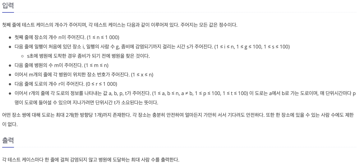 따라서 해당 augmenting path를 통해 이동할 수 있는 사람의 숫자는 (s - 해당 간선을 통해 병원을 갈 수 있는 최소 시간 + 1) * capacity이다.