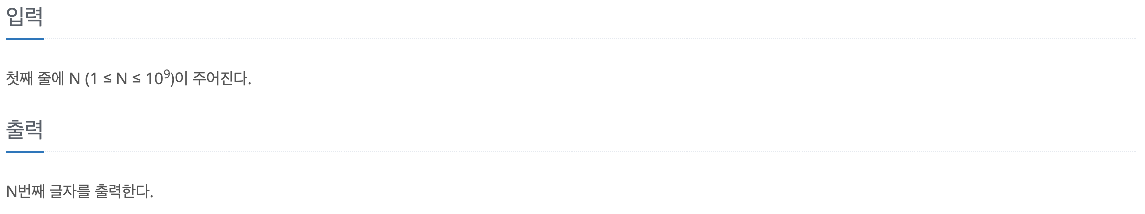 바로 분할정복으로 들어가지말고, Moo(n)에 해당하는 자릿수를 구해서 어느 Moo value 자리에 의해 알파벳이 결정되는지 판단해주면 된다.