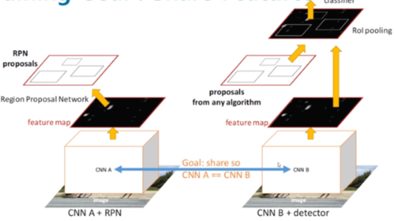 위 사진에서 볼 수 있는 것처럼, RPN과 detector 모두 CNN의 결과 나온 feature map을 공유하므로 이를 공유하자는 개념에서 Faster R-CNN이 출발하였다. 이를 통해 연산량을 많이 감소시켰다.