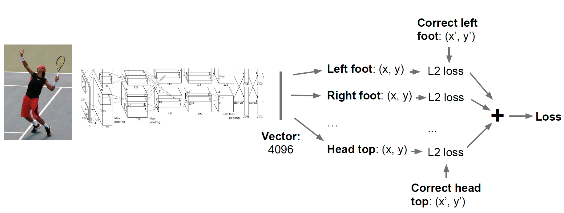 Human pose estimation의 경우도 14개의 joint position의 위치를 통해 loss를 구하고 이를 concat해서 Total loss를 구할 수 있다.