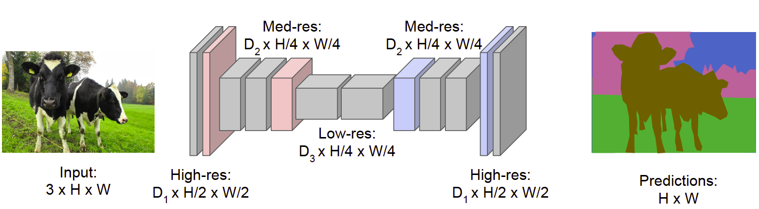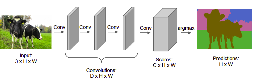 해당 작업은 이미지를 받아 모든 pixel를 Category label에 대응시키는 작업이라고 할 수 있다.