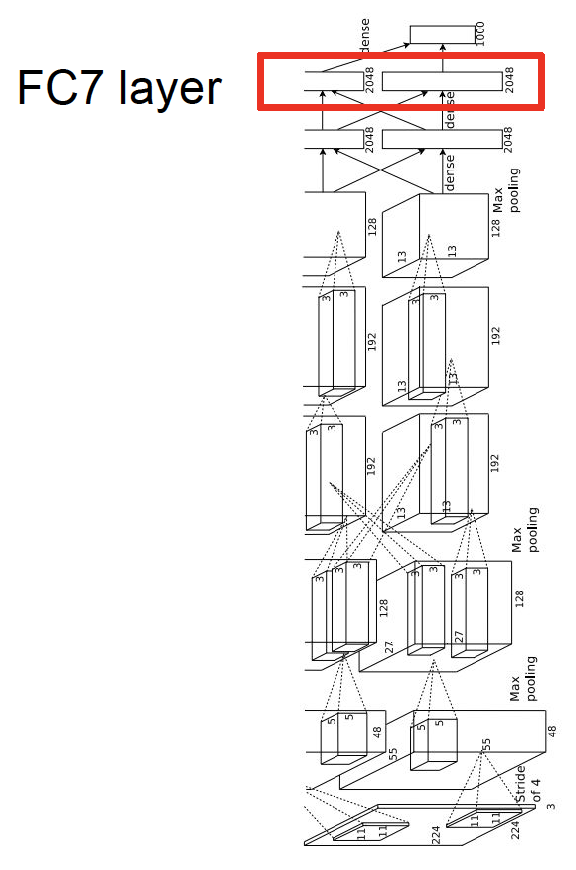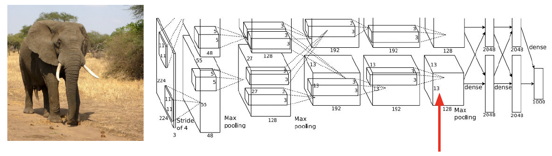 다른 방법으로는 Last layer에서 무슨 일이 일어나고 있는지 이해하는 것이다. image dataset을 CNN에 넣고, 각 이미지 별로 4096 dimensional vector를 기록해둔다.