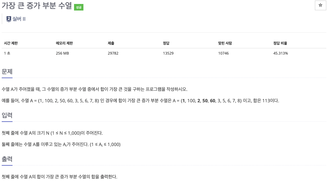 dp[i] = i번째 수부터 시작하는 LIS 중 합이 가장 큰 값