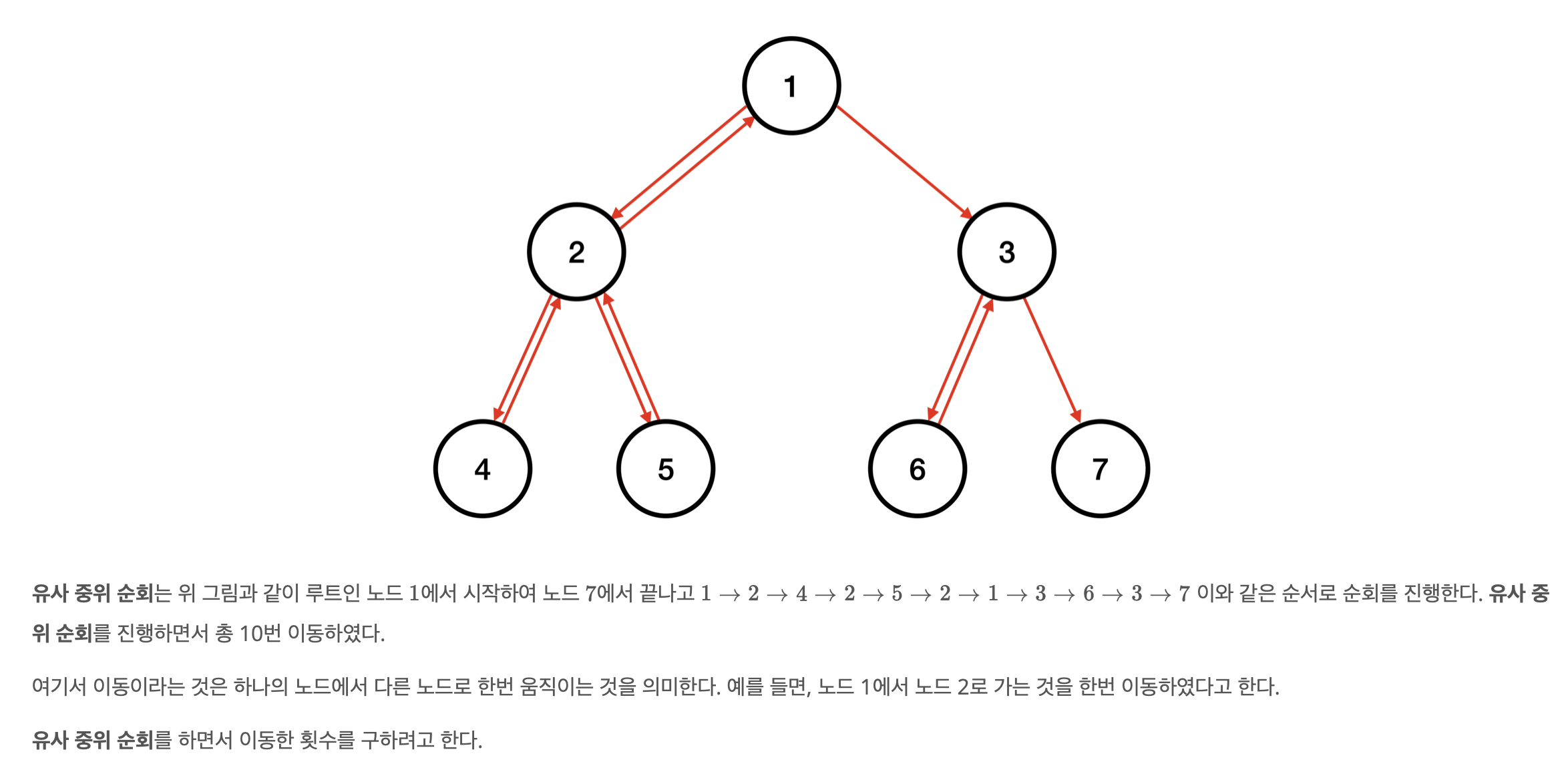 조금은 발상적일 수 있는데, 간선을 2번 방문하지 않는 경우는 가장 오른쪽 노드들을 방문할 때가 유일하다.
