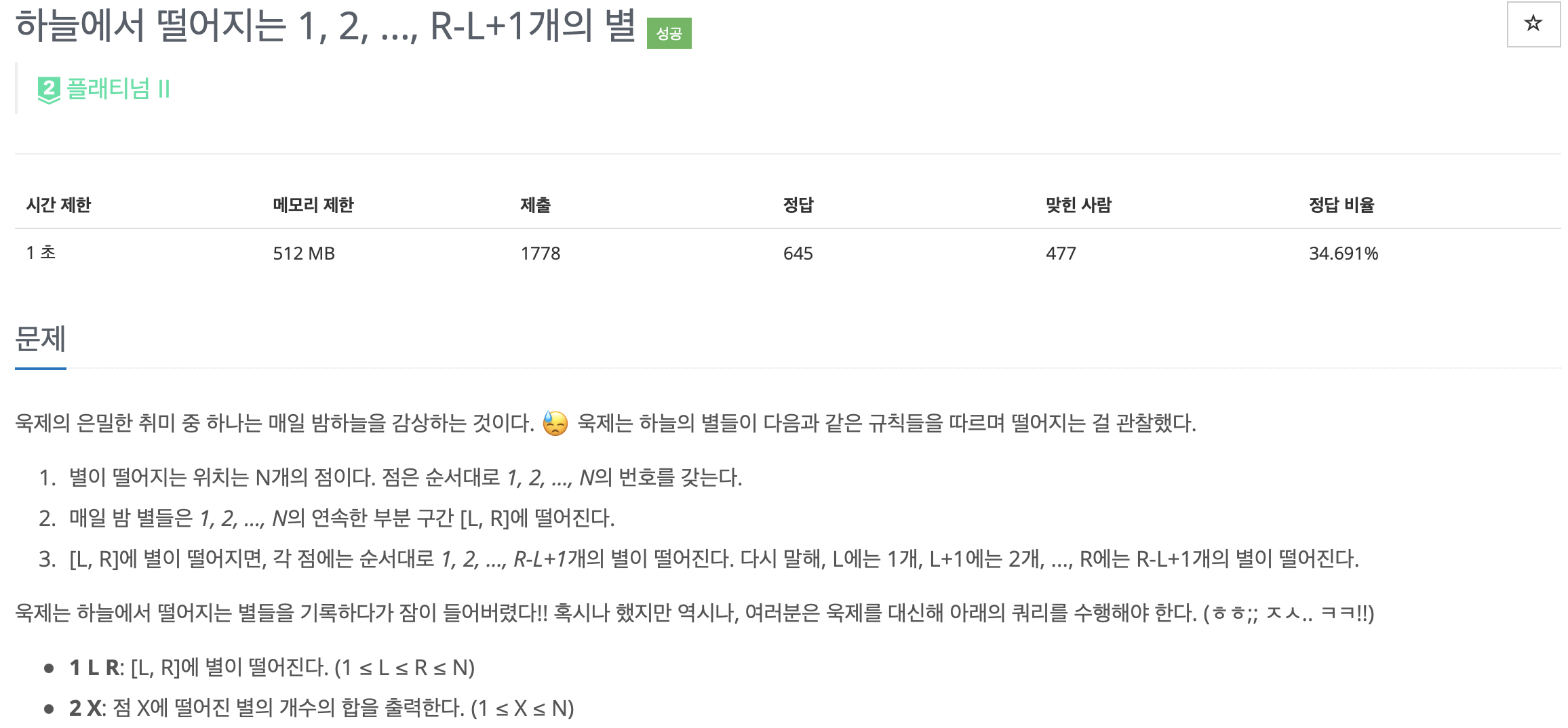 구간에 대한 정보를 업데이트를 하는 상황이므로 Lazy propagation임은 쉽게 파악할 수 있었을 것이다.