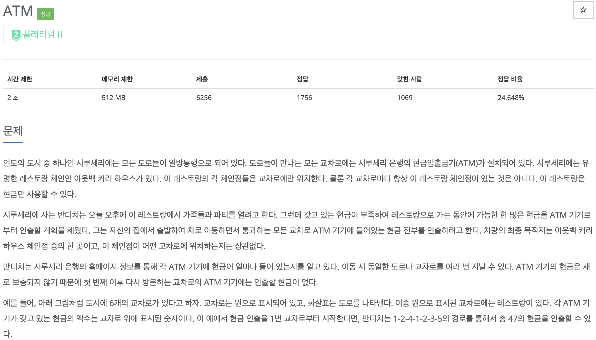 일단, 그리디한 관점으로 보면 가능한 ATM 기기를 최대한 많이 거쳐가는 것이 유리하다.