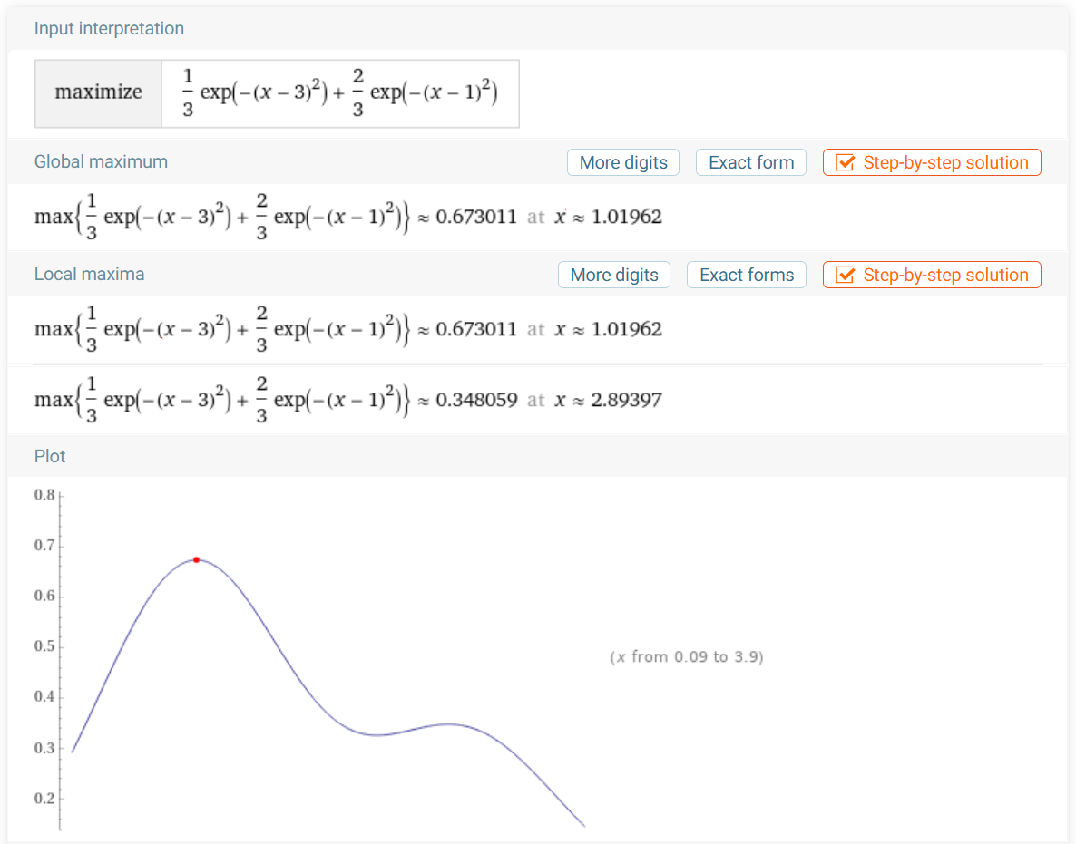 이거의 최댓값을 구하기 위해서는 numerical한 방법밖에 없다. 실제 계산을 해보면 다음과 같다.