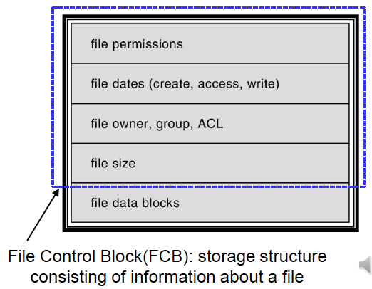 File를 찾는데 overhead를 줄이기 위해서 OS는 open-file table 이라는 자료구조에 열려있는 모든 file에 대한 정보를 저장해놓는다. (file attribute도 open file table에 저장되어있다.)