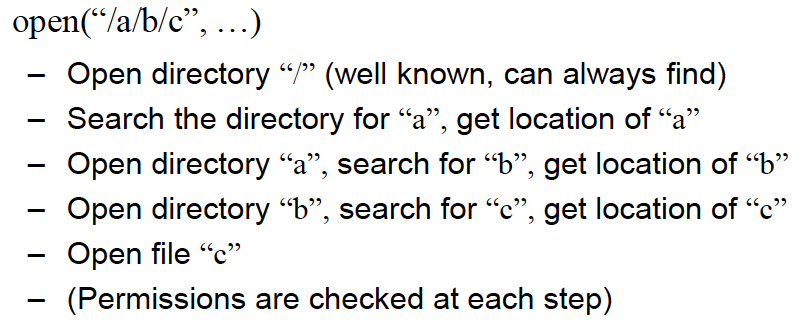 - 파일의 경로를 디렉터리 구조를 따라 디스크에서 탐색하여 해당 파일의 inode를 찾습니다.
