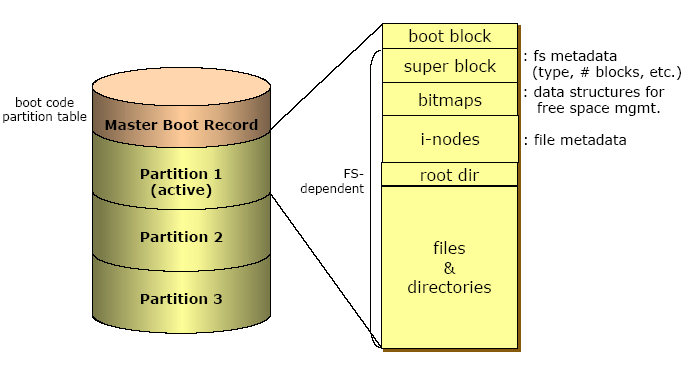 storage에 file을 저장하는 방식. 효율적인 storage 관리가 필요하게 된다.