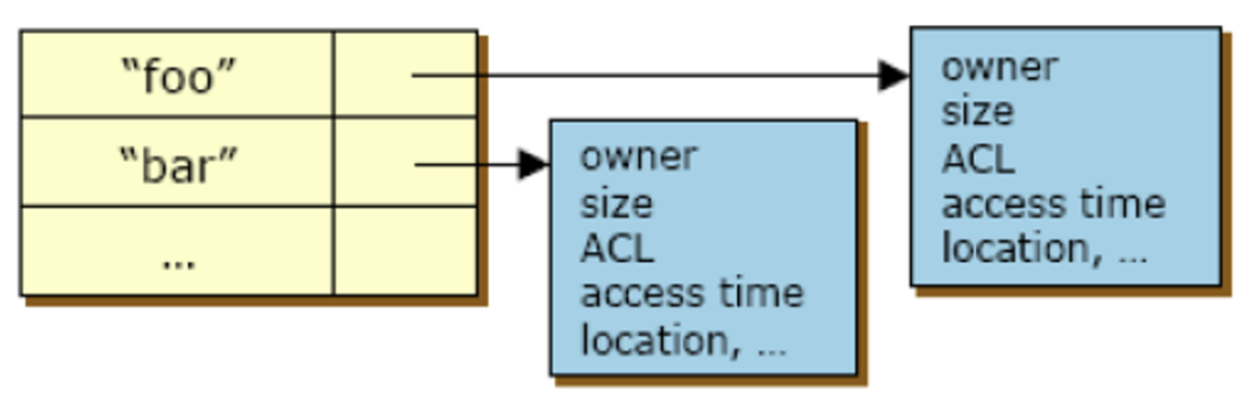 - 파일 및 디렉토리의 이름: 디렉토리 내에 포함된 파일과 하위 디렉토리의 이름 목록을 추적합니다.