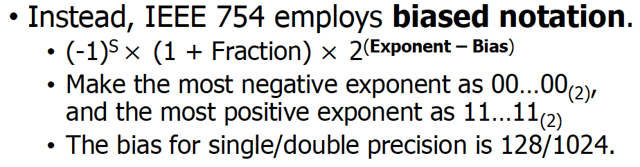 → 근데 그러면 exponent field가 음수가 들어오게 되면 번거로워짐