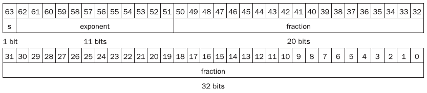 → Implied 1 + a 23/52-bit fraction