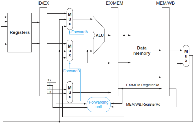 - rd와 일치하는지 체크 (각각 ALU의 first, second input을 비교)