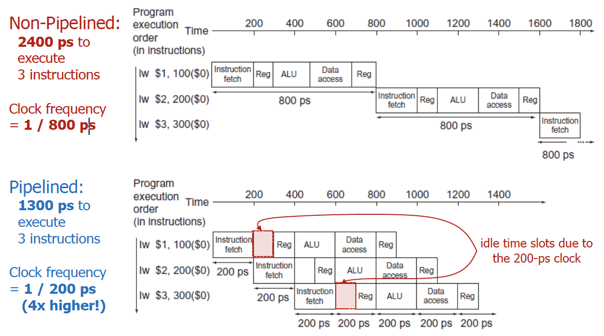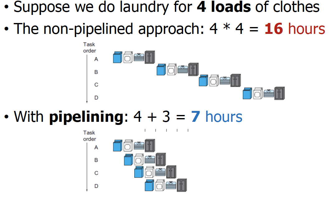 → 1초 내에 몇 개의 명령어를 끝낼 수 있는지를 고려해보면, pipeline을 사용하면 5배까지 늘릴 수 있다.