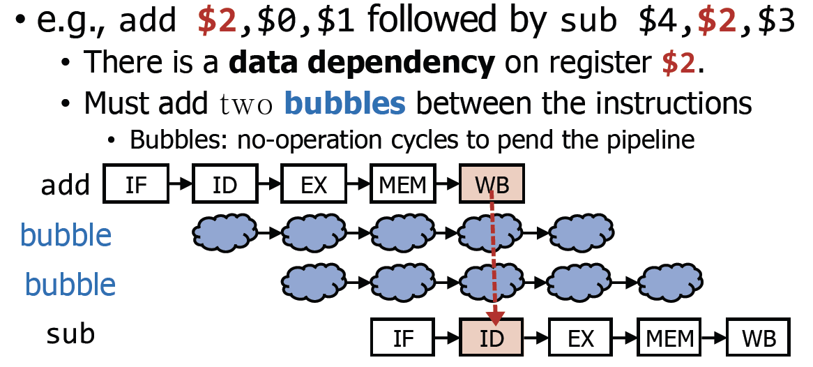 Read Write dependency가 있는 경우 2개의 bubble을 넣어주어야 한다.