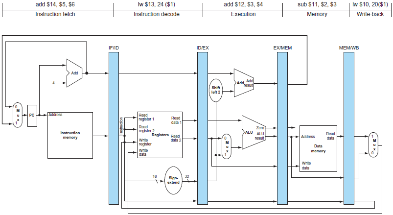 💡정확하게는 add의 IF를 거치면 이미 +4로 넘어가 있기는 하지만, 그 다음에 바뀌는 걸 막는 것예를 들어 add 명령어가 실행시킬 때 pc값이 1004라고 하면, IF 명령어가 끝났을 때 이미 pc는 1008로 바뀌어 있다. 우리가 하고자하는 것은 1012로 바뀌는 것을 막고 싶은 것