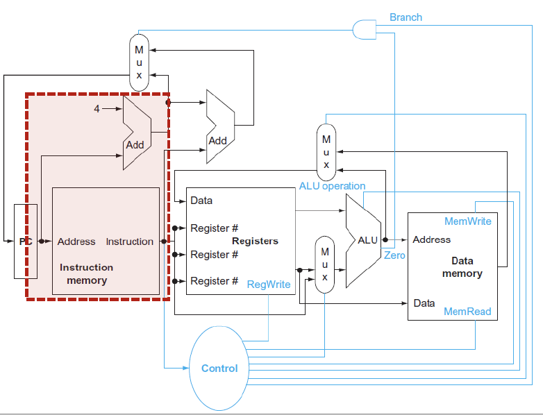 복잡도를 낮추기 위해서 Instruction memory가 있다고 생각