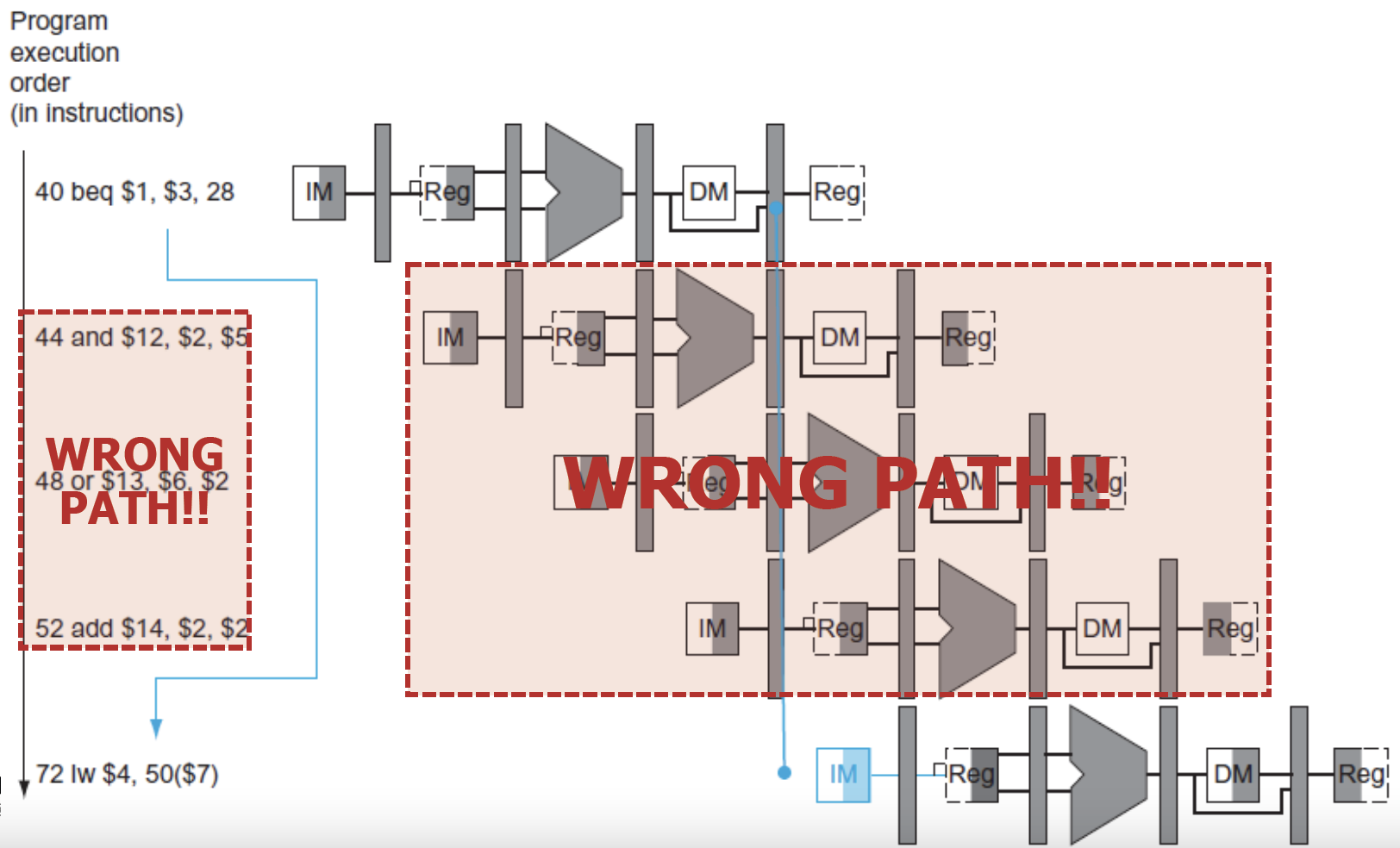 beq의 MEM와 그 다음 instruction의 F를 align을 해야한다.