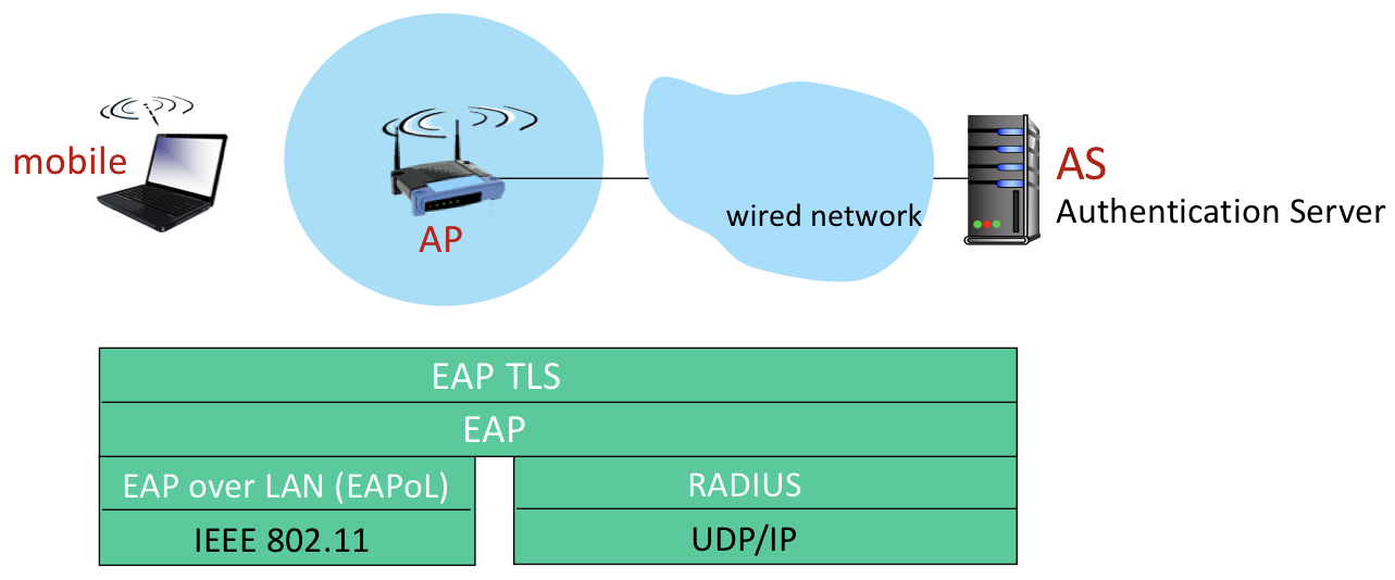 - Authentication : The mobile device must authenticate to the network via an Authentication Server (AS)