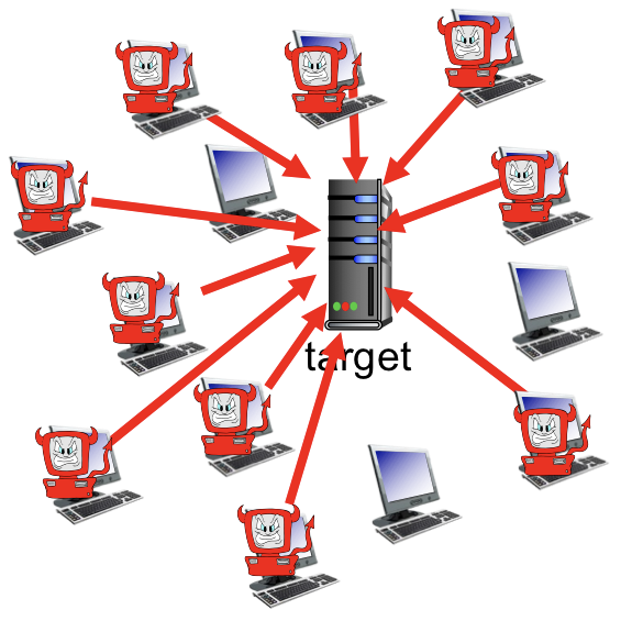 Attackers make resources (server, bandwidth) unavailable to legitimate traffic by overwhelming resource with bogus(illegal) traffic