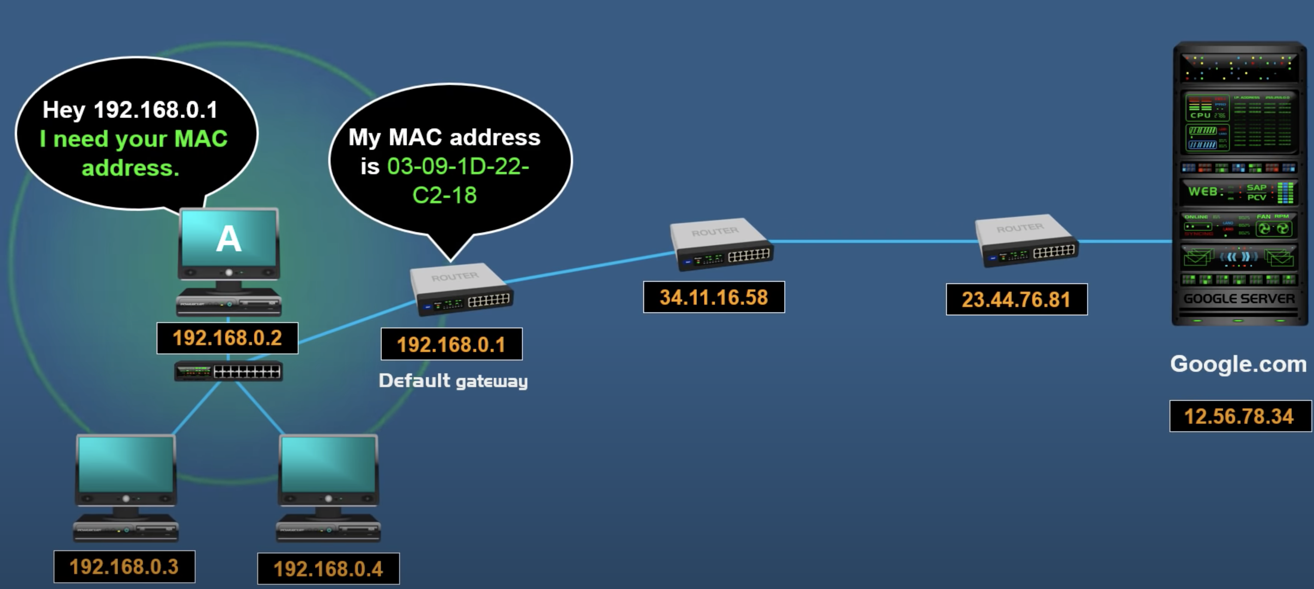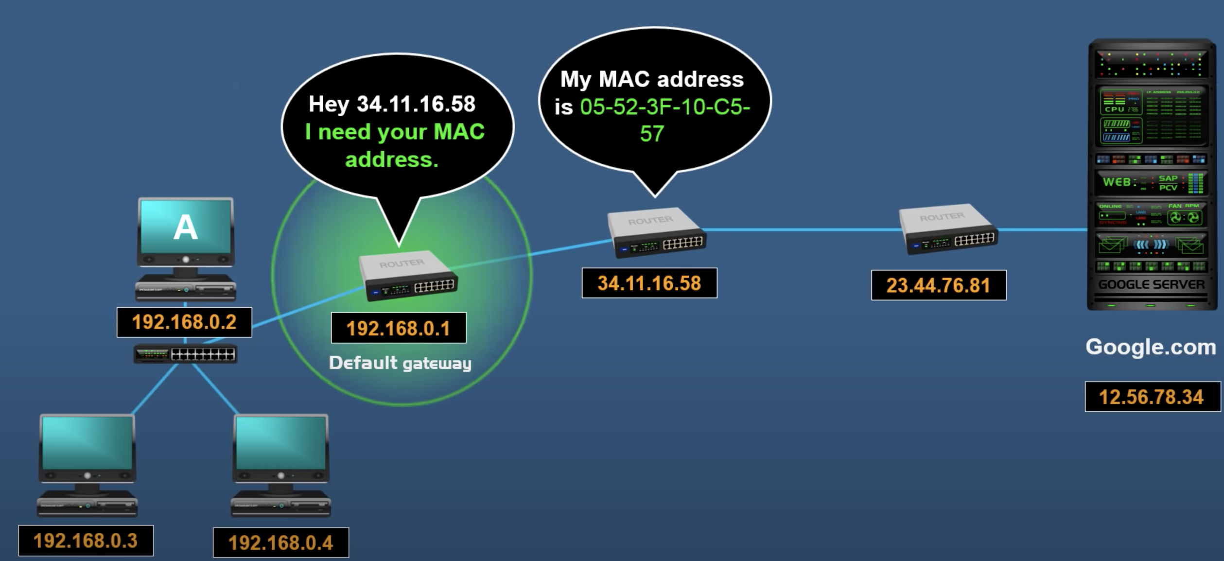 each stepon its way to the final destination→ MAC address는 동일한 subnetwork에 있는 network device끼리 data를 전송하는데 사용된다.