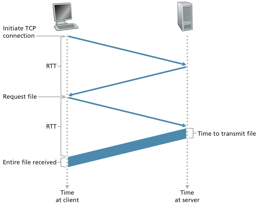 tree-way handshake를 진행한다고 한다. 따라서 초기 TCP packet이 3개가 관여된다.그리고 만약 non-persisent connetion를 하게 되면 초기 Initial TCP connection을 설정하면서 발생하는 시간을 매번 HTTP request할 때마다 소비해야 한다. 반면 persistent connection을 하게 되면 최초 한번만 하면 된다는 점에서는 장점이지만, 상태를 기억해야한다는 점에서는 overhead가 크다.