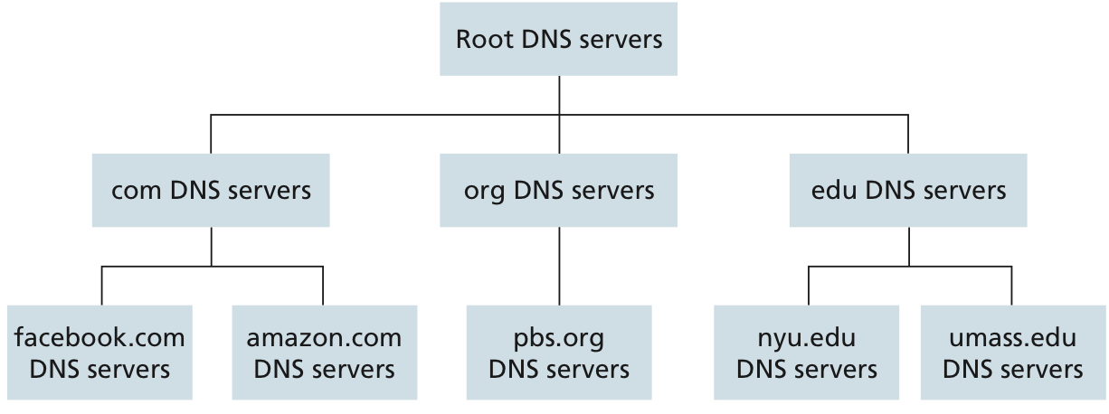 - Top-level domain (TLD) server : For each of the top-level domains such as com, org, net, edu, and all of the country top level domains such as uk, fr, ca.💡즉, domain별로 DNS server가 나누어져 있는 것이다.
