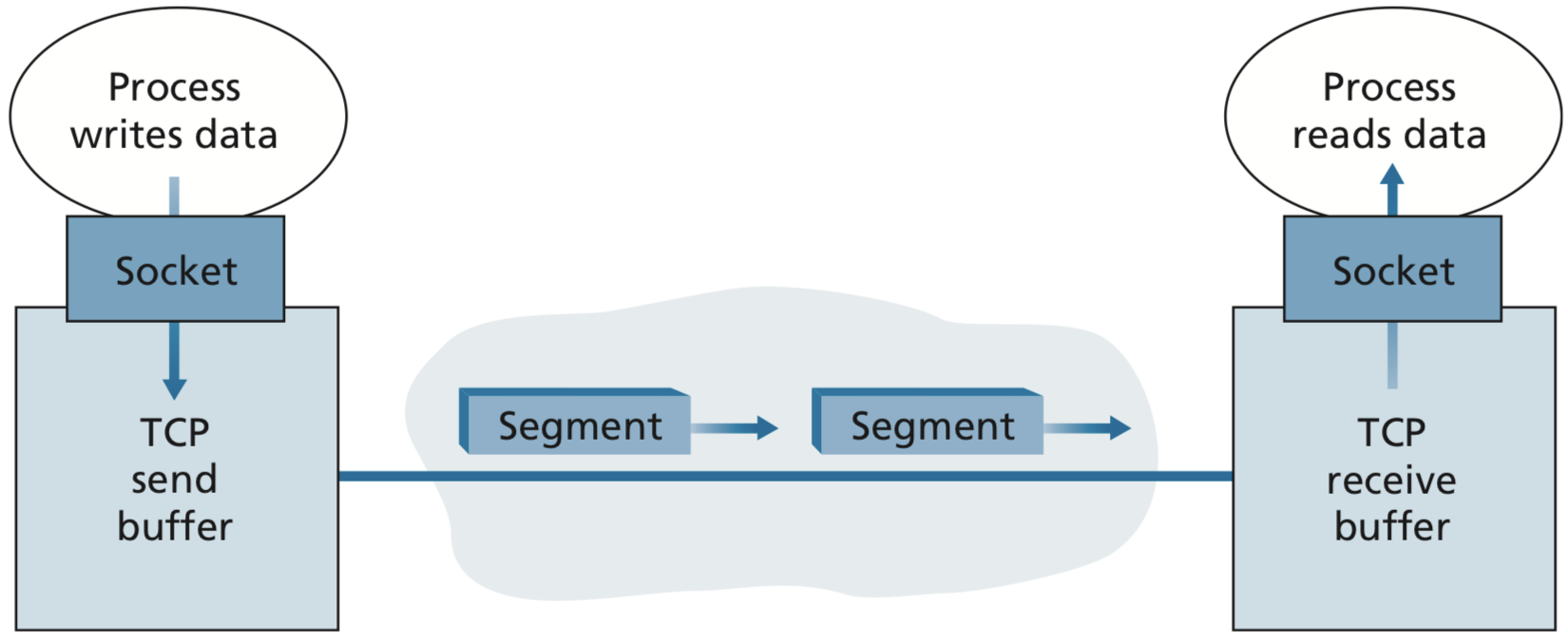 주의할 점은 TCP protocol은 end system에서만 작동된다. 즉, intermediate network는 datagram만 확인하지 TCP connection과는 무관하다.