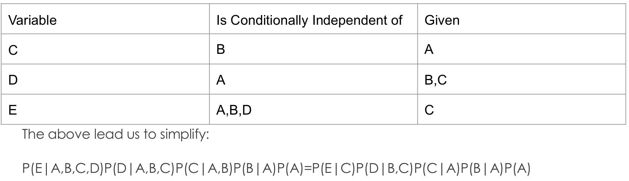 If we know of the existence of conditional independencies between variables we can simplify the network by removing edges
