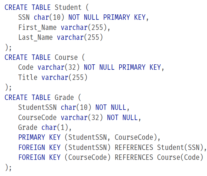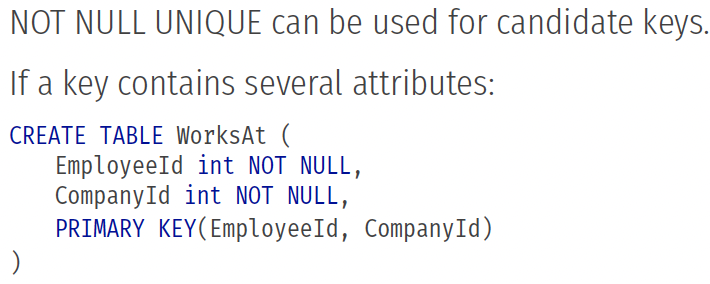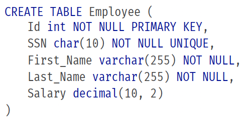 ID와 SSN 둘 다 unique하지만 ID를 primary key로 설정한 이유는 integer가 computational cost가 적기 때문이다.