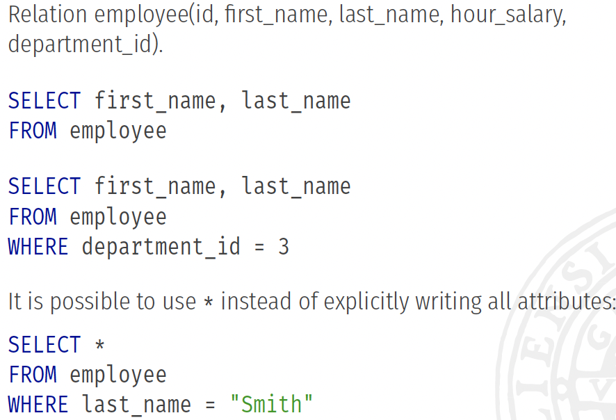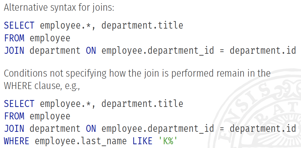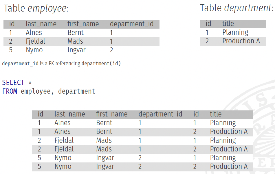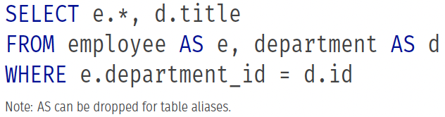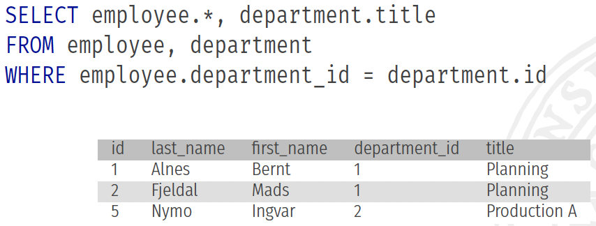 Idea: DO the relational product and take only the rows where the employee’s department_id is equal to the department’s id