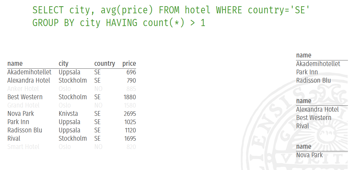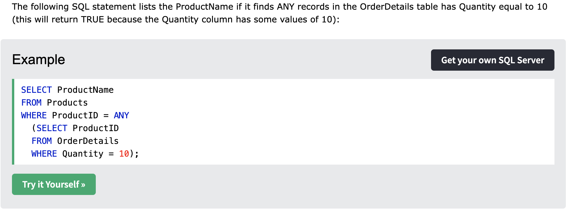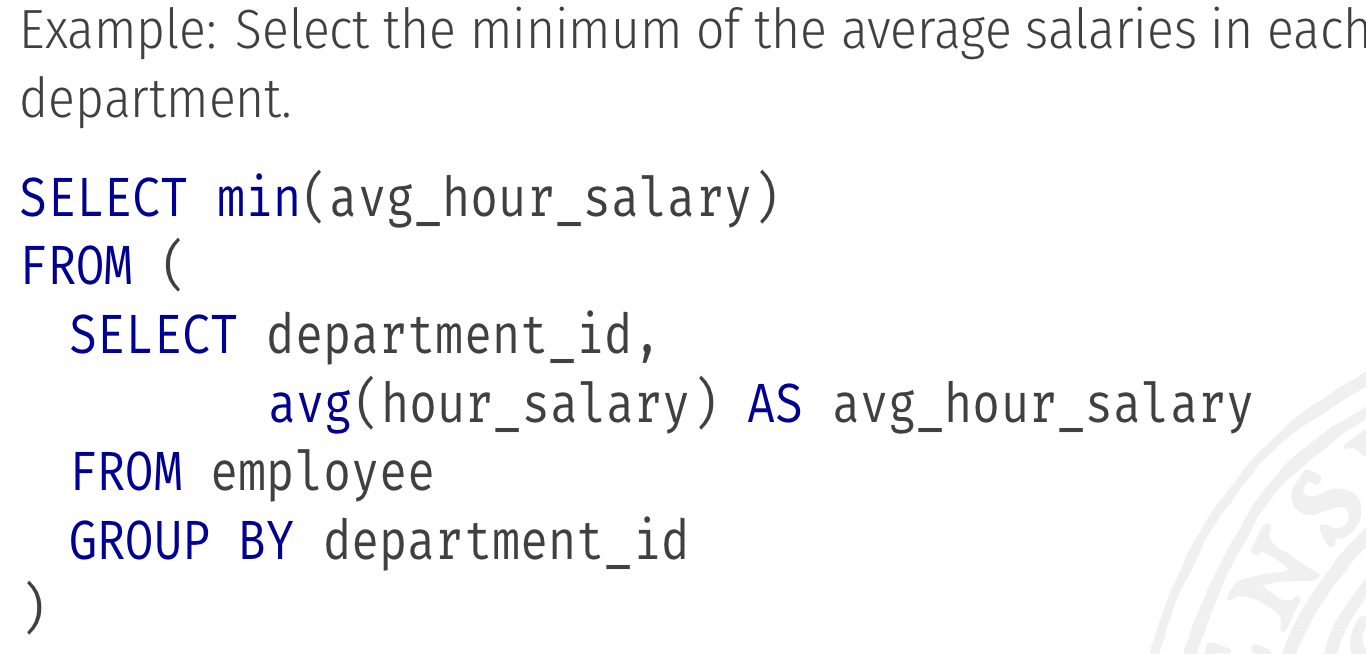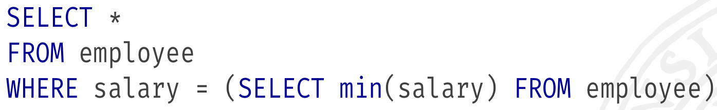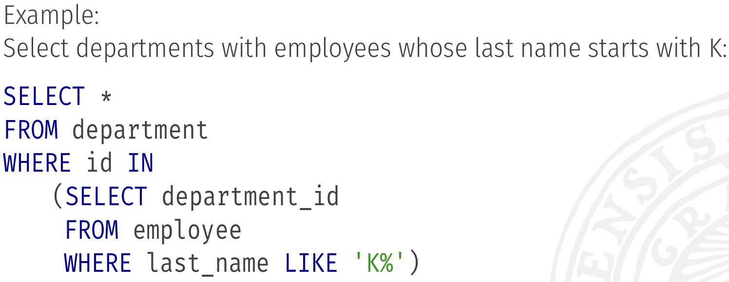 Similarly, instead of a list of constants, we can use a nested query which returns several values