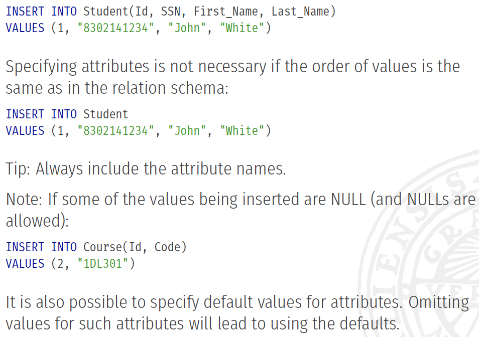 위에서 studnet 뒤에 column 이름을 명시하지 않아도 된다. 단, 그렇게 되면 모든 attribute를 다 포함해야한다