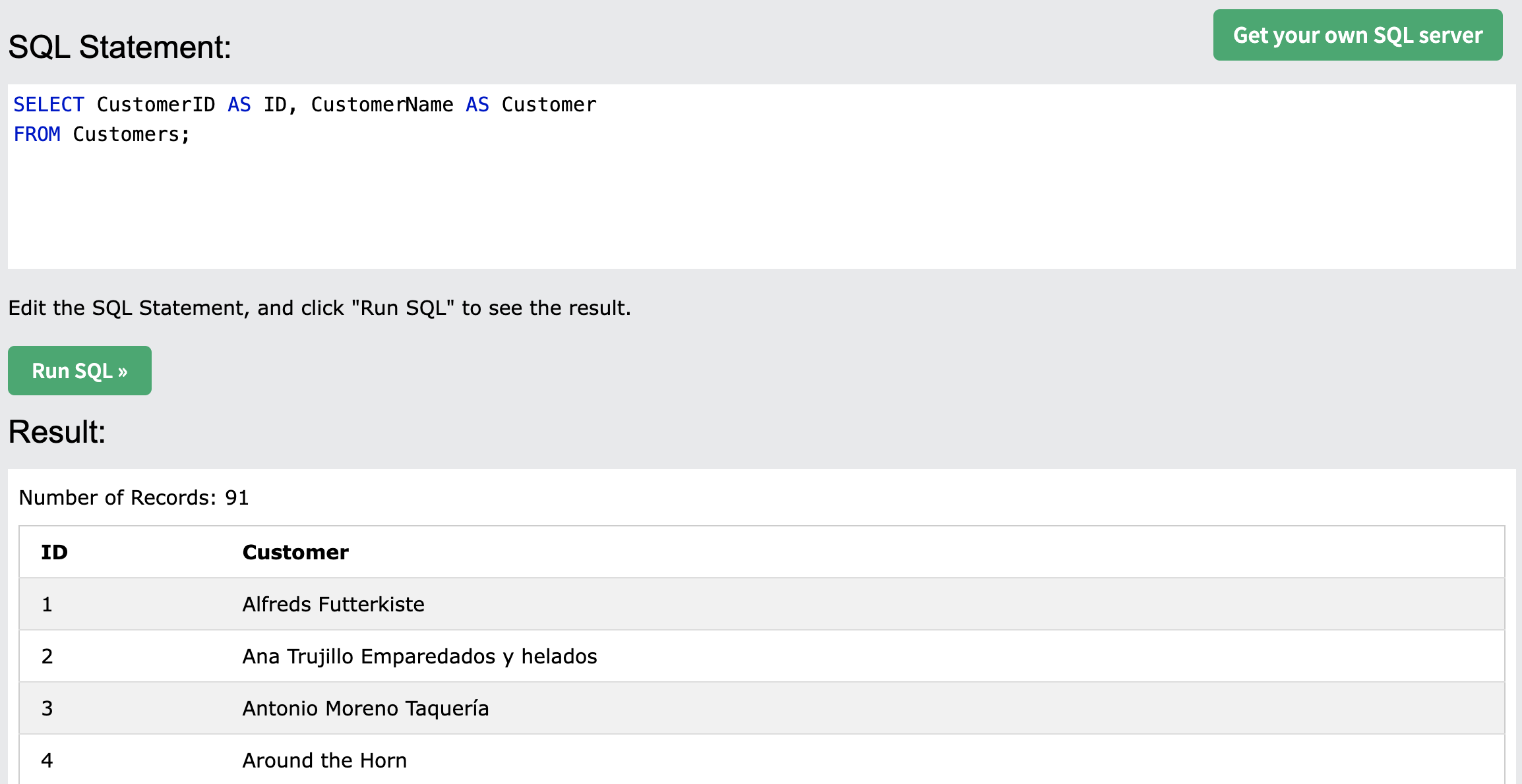 AS를 붙이는 이유는 출력되는 column name을 지정해주는 것이다.