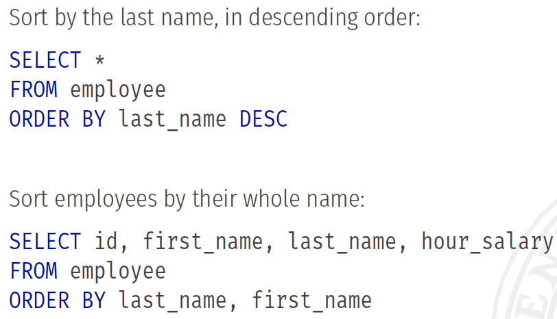 Order of rows in the result can be given by adding the ORDER BY CLAUSE