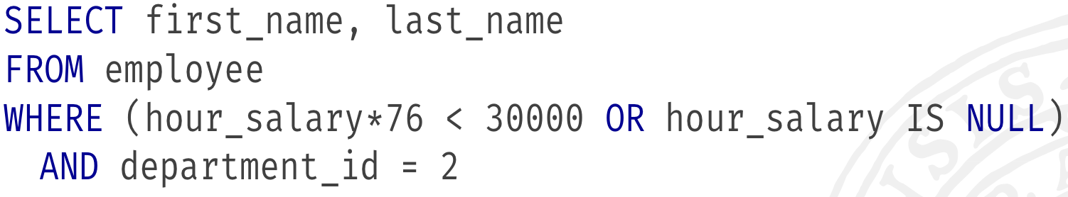 Logical connections AND , OR , NOT can be used to create a more complex where condition