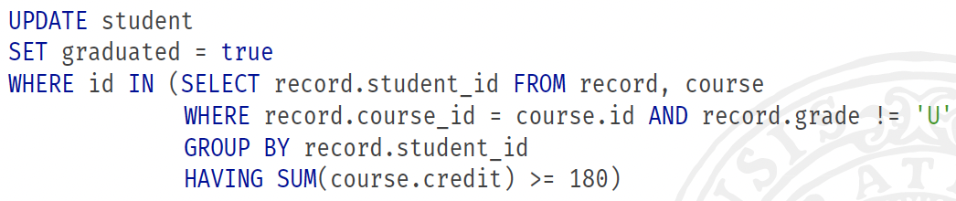 UPDATE (graduated) ON student