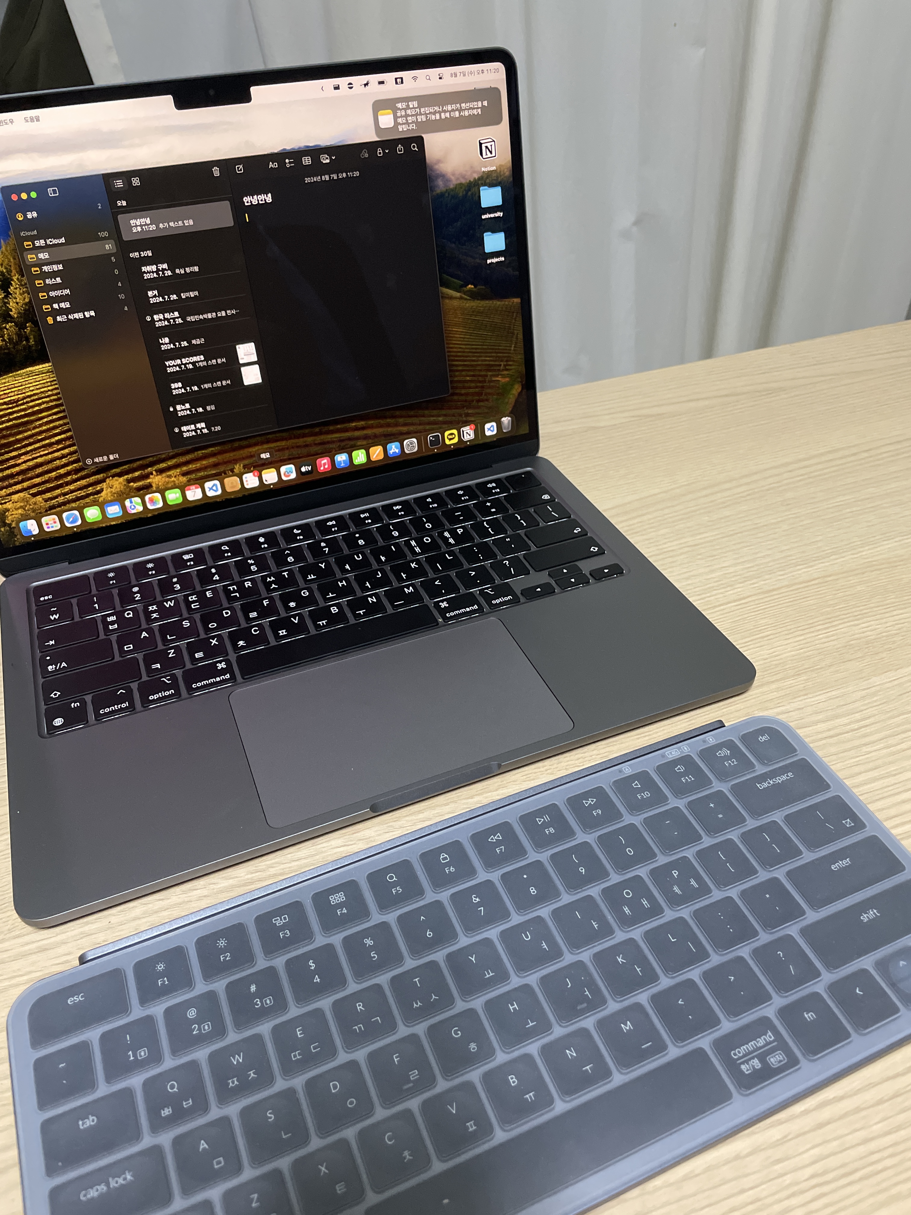 K8 제품과 마찬가지로 키크론 제품의 경우 맥을 사용하고 있는 저에게는 더할나위 없는 좋은 선택지였습니다. 맨 처음 제가 K8을 입문하게 된 계기가 맥과 호환이 되면서 기계식 키보드이고 블루투스 키보드를 잘 제공하고 있다는 점 때문이였는데, 이번 모델 B1 pro 역시 기계식 키보드만 제외하고 맥과의 호환성 및 블루투스라는 점에서는 충분히 매력적인 제품이라고 생각합니다. 아래 사진에서 볼 수 있는 것처럼 맥북과 아이패드에서 정상적으로 작동하는 것을 확인할 수 있습니다.