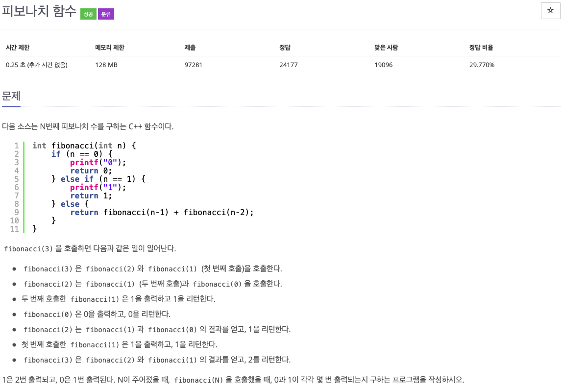추가적으로 피보나치의 경우에는, 같은 계산을 매우 반복해서 해야하는 상황이 등장하게 되므로 DP를 이용하여 이미 존재하는 숫자의 경우에는 계산을 하지 않고 바로 return만 시켜주면 된다.
